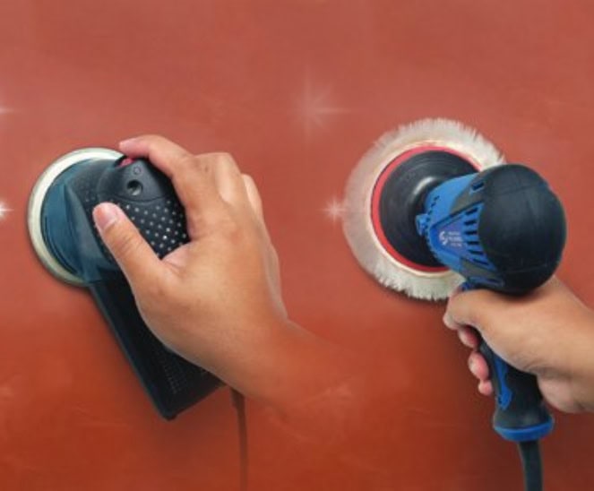 Segera gosok menggunakan amplas orbital dengan kertas amplas no.1000. Jika ingin lebih kilap, lanjutkan penggosokan menggunakan alat buffing tanpa wax atau rubbing compound.